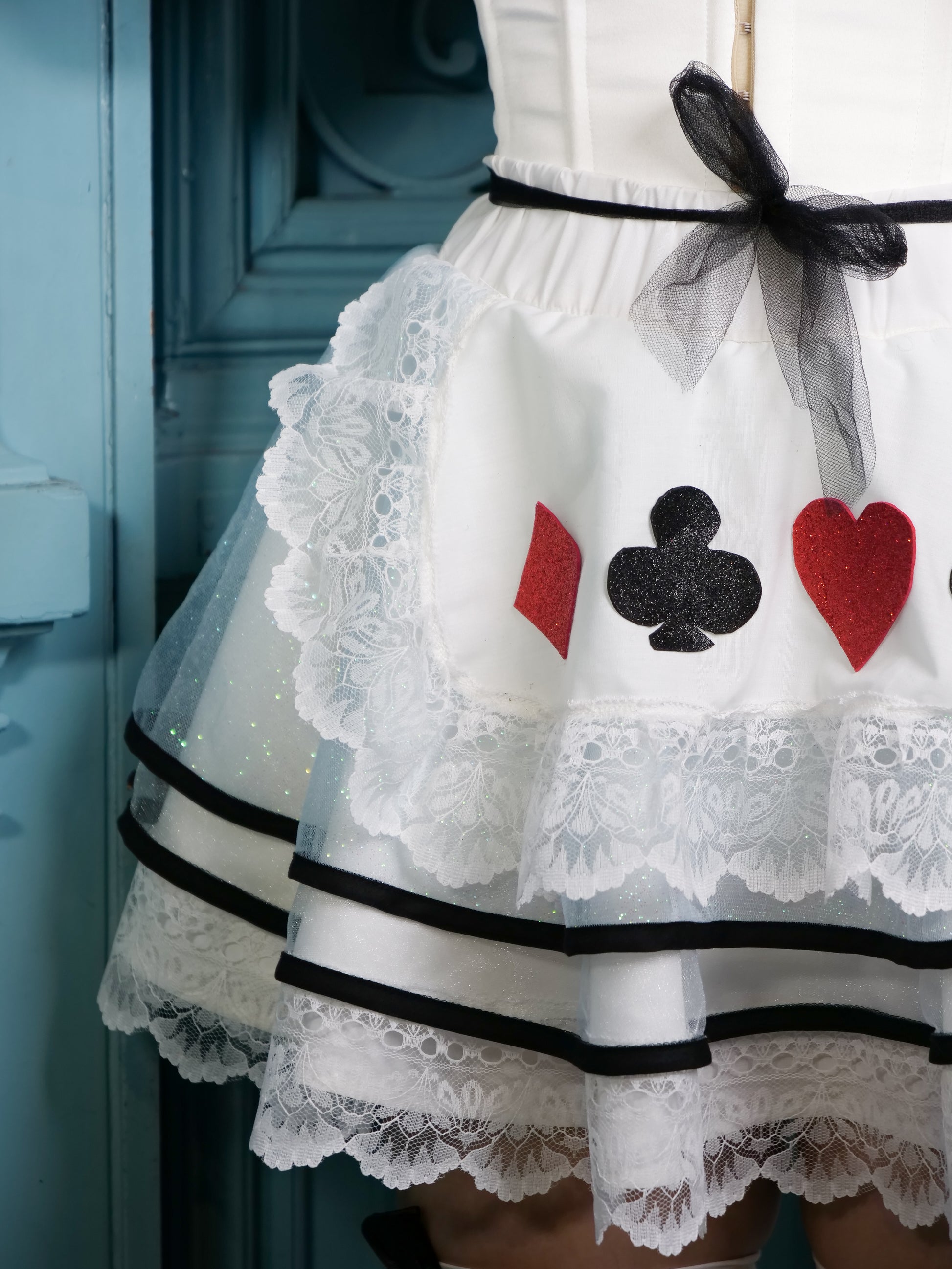 - Falda de tul con bordados de naipes ♠ ♥ ♦ ♣.